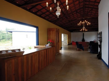 Construído em uma área de 56.600 m2 (cinqüenta e seis e seiscentos e metros quadrados) a pousada, inicialmente, ocupa 960 m2, em um casarão colonial mineiro, dividido em: Ø um foyer, com um pano de vidro ao fundo, com vista para os jardins e as montanhas; Ø salão para dois ambientes, tendo em um deles, uma lareira; Ø varanda colonial; Ø restaurante com fogão a lenha, dois banheiros e lavabo; Ø solarium contíguo ao restaurante, com vista para os jardins e as montanhas; Ø cozinha, planejada conforme a normatização da ANVISA - RDC nº 216 de 15/09/2004; Ø 06 apartamentos com varanda e 05 apartamentos sem varanda (acomodação para 02, 03 ou 04 pessoas). Todos os banheiros com barras de segurança e piso antiderrapante, para atendimento a idosos e deficientes físicos; Ø Salão de jogos (em fase finalização) A entrada pelo portão principal "Alameda do Alferes", é ornada por licuris. O terreno possui privilegiado acervo natural, permitindo ao hóspede a observação contemplativa. Temos alguns roteiros selecionados para possibilitar ao hóspede da pousada - com exclusividade - cavalgadas ou caminhadas regadas por fatos históricos e causos, explicações de termos e expressões do uso popular e sua origem. Oferecemos café da manhã, com quitandas feitas na própria pousada (pães, geléias - inclusive diet - doces, etc.); almoço servido no fogão a lenha; caldos e sef-service de sanduíches à noite. É a primeira pousada planejada, na região, com banheiros e cozinha construídos conforme a normatização 216 da ANVISA, garantindo não só a funcionalidade da pousada e segurança para os hóspedes. Privilegiamos a contemplação da natureza, o descanso, passeios culturais e ecológicos e o desenvolvimento de oficinas de cerâmica, regadas a um delicioso chá de fim de tarde, servido em solarium, com vista exuberante. Também estamos demarcando uma trilha dentro da própria pousada, onde poderão ser apreciadas espécies nativas do cerrado. Podemos montar pacotes especiais, conforme a necessidade e desejo de nossos hóspedes.